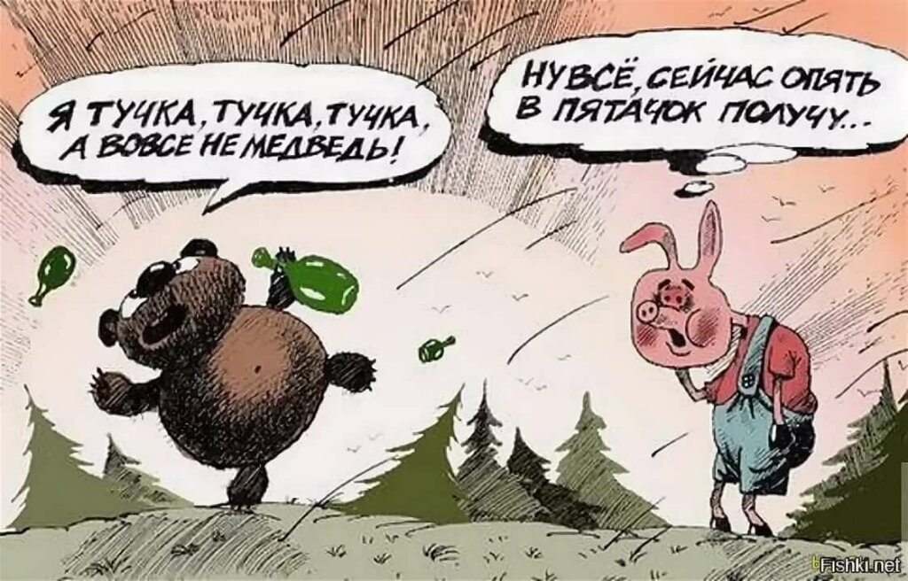 И, конечно, фирменное «Топ-топ-топ» по лесу – это не что иное, как утренний спринт фермерских свинок к корыту. Медведи, во-первых, топают реже, во-вторых, зимой спят, а Пух зимой активен, ибо холодильник подкармливает круглогодично 😂 😂 😂
