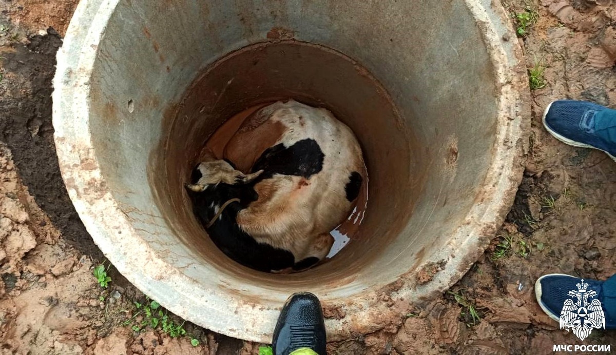 Под Тверью спасатели вытащили бычка, который упал в колодец