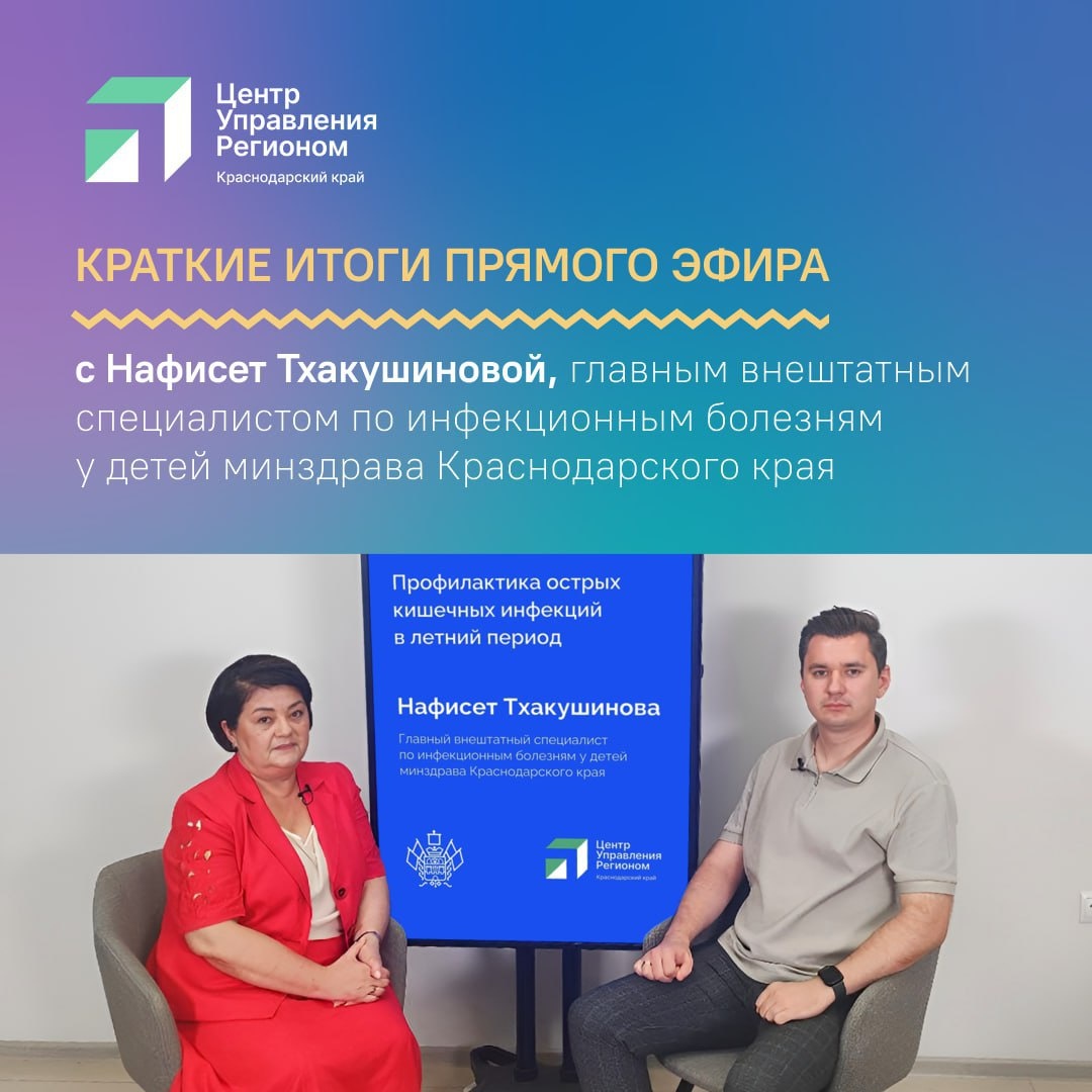 🔷 Как защитить себя и своих детей от острых кишечных инфекций? 🔷 Как правильно лечиться от ротавируса? 🔷 Какая обстановка с кишечными инфекциями на Кубани этим летом? На эти и другие вопросы ответила главный внештатный специалист по инфекционным болезням у детей министерства здравоохранения Краснодарского края Нафисет Тхакушинова. Запись доступна в сообществе «Краснодарский край» в соцсетях «ВКонтакте» и «Одноклассники».