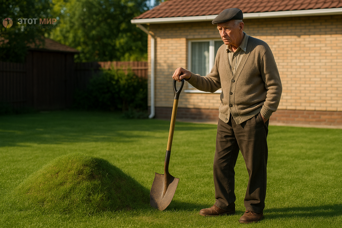 История о том, как безобидный холмик в саду обернулся смертельной находкой. На протяжении почти десяти лет возле старого сарая в саду 75-летнего пенсионера, бывшего агронома Николая Ивановича Соловьёва, медленно рос странный и таинственный бугорок. Когда он только переехал в свой загородный дом, это было лишь маленькое возвышение земли — настолько незначительное, что его почти не замечали. Но с годами оно всё увеличивалось, будто что-то из глубины земли упорно рвалось наверх. Сначала Николай не придавал этому значения. Жена посмеивалась: мол, завёл себе «садового питомца». Но старик, всю жизнь проработавший на земле, чувствовал нутром — почва сама по себе так не «растёт». Там, под ногами, что-то скрывалось. В один весенний день терпение кончилось. Николай взял лопату и решил наконец-то разобраться с этой странной загадкой. Он даже не подозревал, что вот-вот откроет забытый и смертельно опасный секрет времён войны. Первые штыки вгрызались легко: обычная земля, суглинок. Николай уже нача