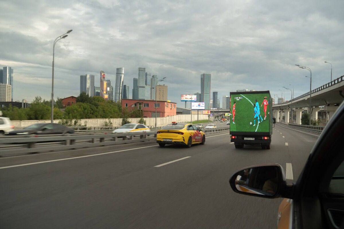 С дороги. По улицам Москвы ездили грузовики, на которых показывали матч РПЛ между «Спартаком» и «Зенитом». Но не в записи. На бортах машин шла прямая трансляция. Диджитал-мобили гоняли по улицам и раньше. Но вот прямую трансляцию матча на них вижу впервые. Что думаете: привлекает такой перф внимание к событию? 💯 – да 👀 – не думаю ПРО маркетинг в спорте