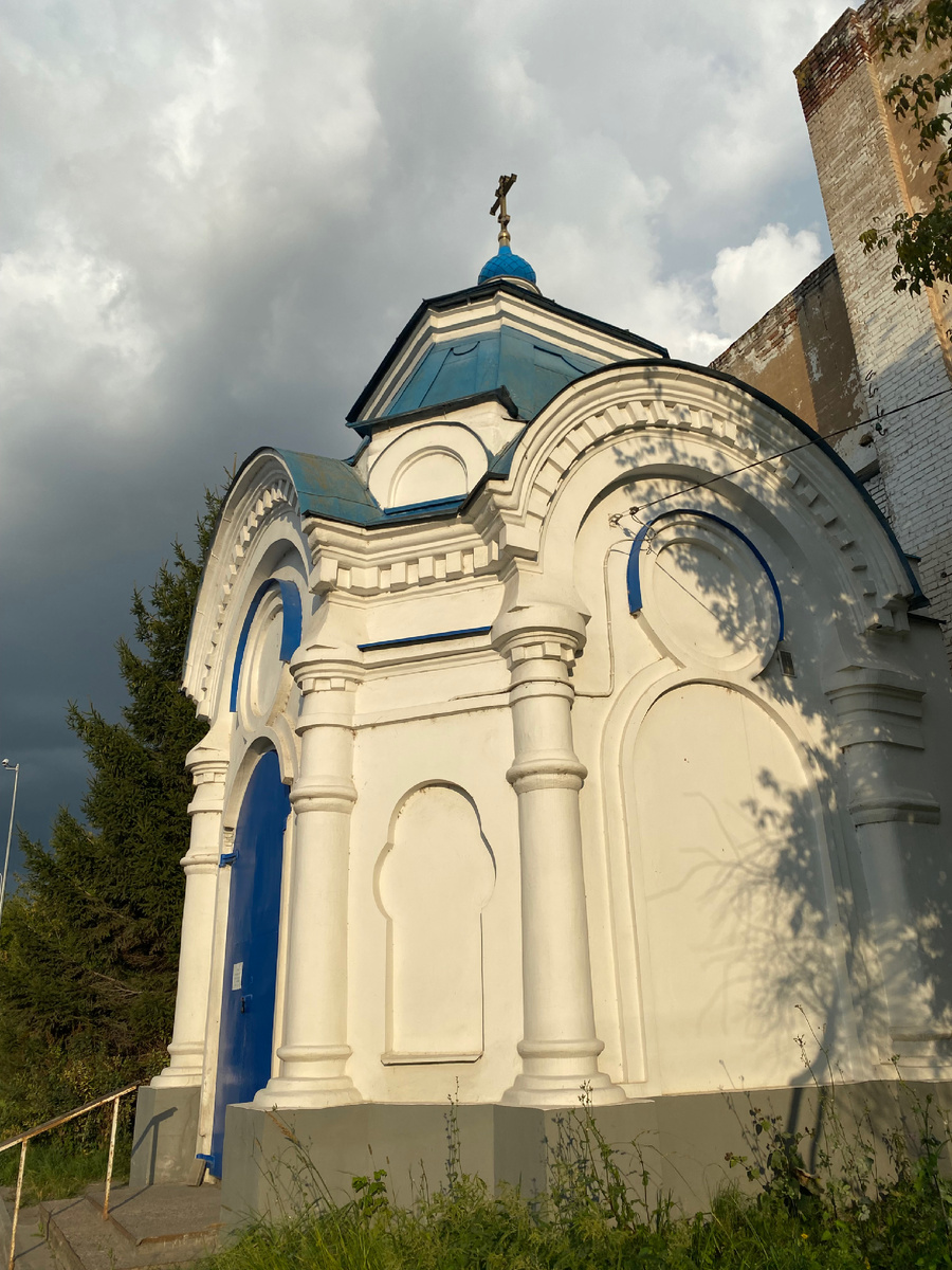 Официальное её название -ЧАСОВНЯ Казанской иконы БОЖИЕЙ МАТЕРИ и преподобного СЕРАФИМА САРОВСКОГО