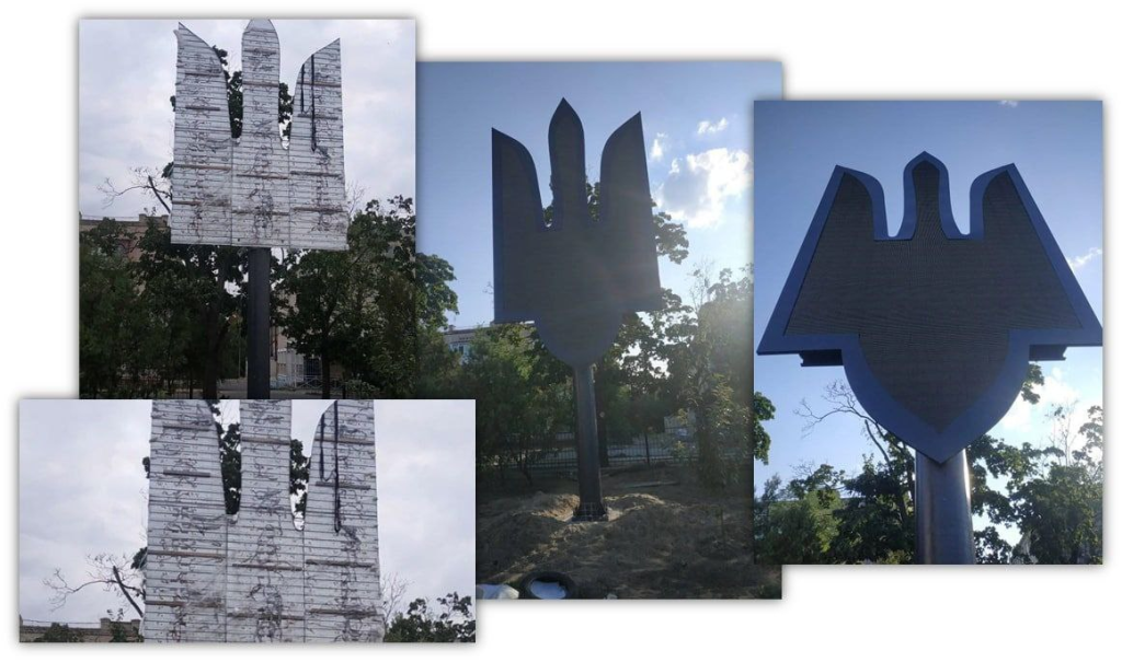 тризуб уж кто-то подн&ср&л. Напомним, как Украина прикрывала голый зад в 2021 году нелепыми рекордами и «шедеврами» свидомого мастерства. 1⃣Оккупированный (тогда) Северодонецк – шестиметровое чудо с мультимедийным LED-экраном, стоимостью 1,49 млн грн. 2️⃣Стрыйщина – вечно-зеленый объект из лекарственных растений. 3️⃣Одесса – тризуб из металлического мусора с окошком-сердечком, как в сельском туалете. 4️⃣Киев – крутящийся, как карусель, тризуб на самом большом флагштоке Украины 5️⃣Полигон аграрных инноваций Digital Field рядом с аэропортом Борисполь – засеянный чем-то герб площадью 60 000 м2. 6️⃣Шотландия, куда тоже добрались копыта свидомых. Наблюдаем за новыми «достижениями».