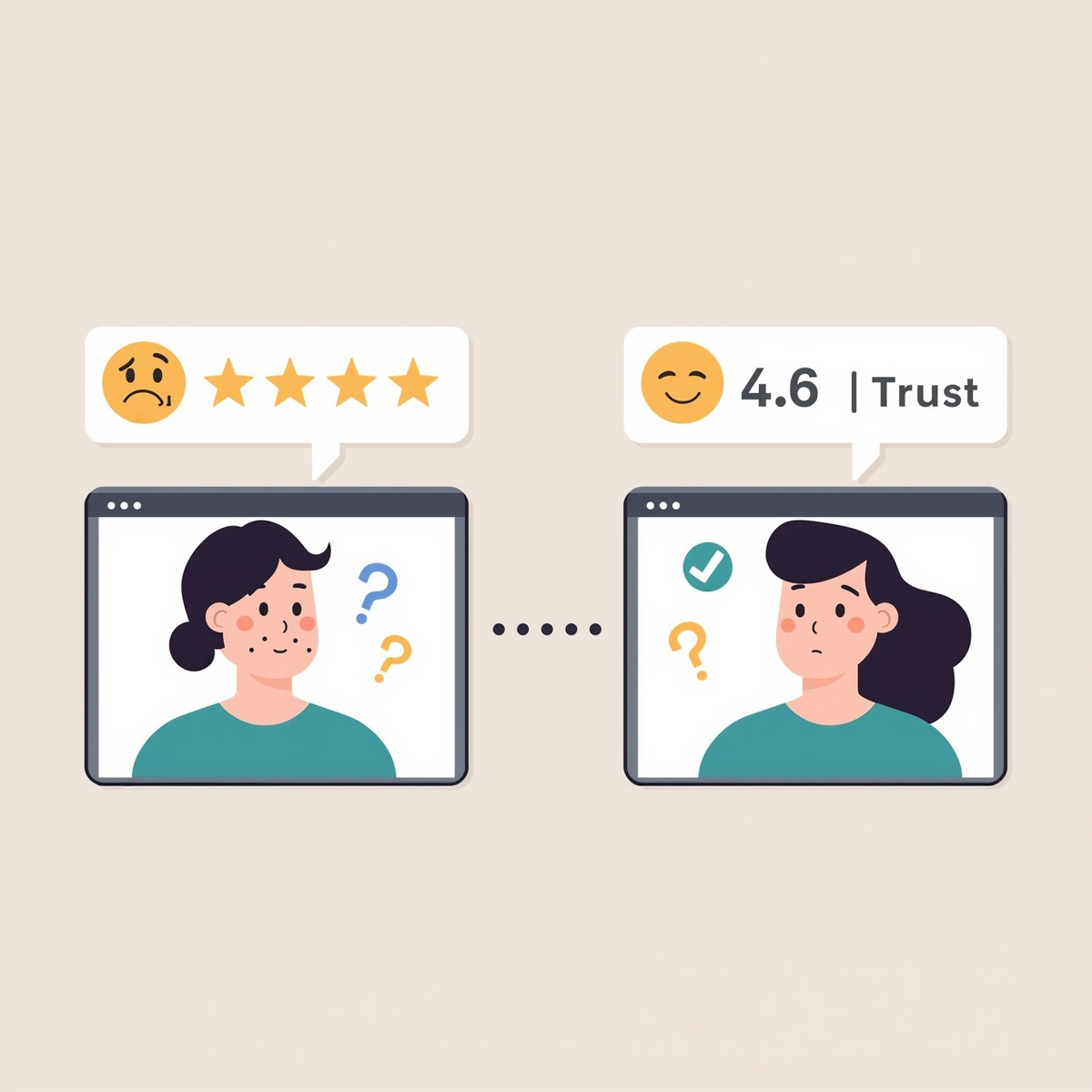 Один из ключевых факторов, который стоит за снижением доверия к 5-звездочным рейтингам, это восприятие пользователей: слишком высокие оценки могут восприниматься как искусственные. Подсознательно потребители часто ассоциируют идеальные 5-звёздочные оценки с фальшью или манипуляциями. В результате они начинают сомневаться в их подлинности.