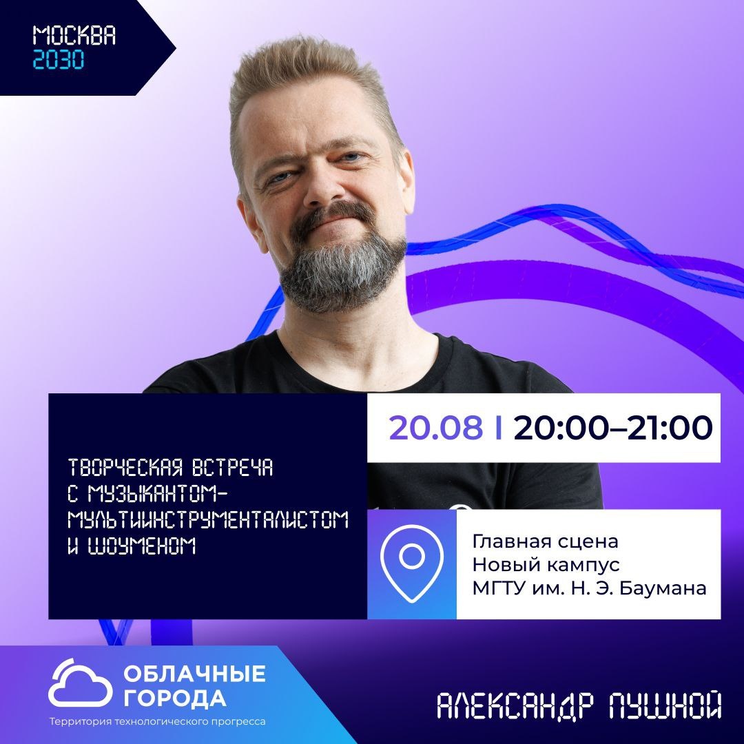 📍📍📍 Думаете, как провести сегодняшний вечер? Музыкальная встреча с Александром Пушным на форуме — вот один из вариантов! В программе — много общения и юмора, а еще исполнение авторских песен и каверов. Известный ведущий шоу «Галилео» будет ждать вас на Главной сцене нового кампуса МГТУ им. Н. Э. Баумана. Начало в 20:00, регистрация не нужна.