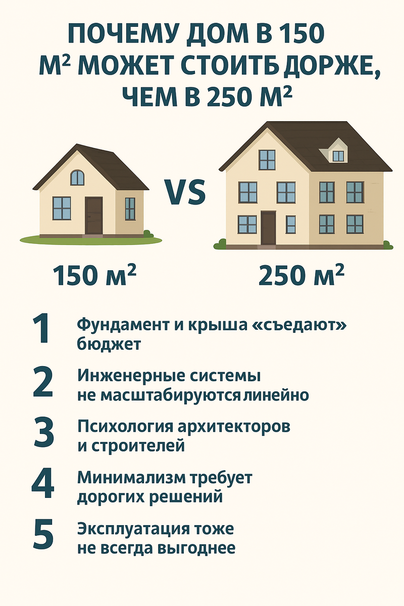 Почему дом в 150 м² может стоить дороже, чем в 250 м²: скрытая экономика строительства