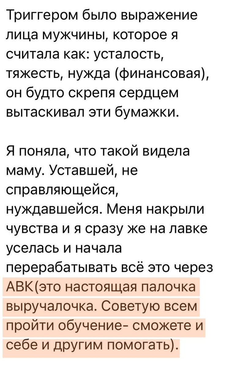 Студенты и выпускники говорят про авторский курс Сергея Ивановича по обучению АВК гипнозу, а мы просто делимся их отзывами, без лишней воды: АВК гипноз - это настоящая палочка-выручалочка. Советую всем пройти обучение - сможете и себе, и другим помогать. Я очень доволен, что освоил у Сергея Ивановича АВК гипноз. Использую как в хронических ситуациях, например, синдром Туретта, так и в острых, требующих быстрого снятия напряжения и тревоги, например, суицидальные мысли. Я использую АВК гипноз практически на каждом приеме, в телесной терапии, даже просто посреди консультации, невзначай снимая напряжение у клиента. Очень довольна - это, действительно крутой и рабочий метод!!! Хотите так же? Какие есть вопросы про АВК гипноз? Задавайте через анонимный бот или в комментариях ⬇️