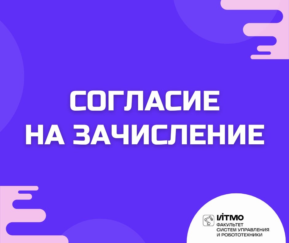 Составили тьюториал о том, как подать Согласие на Госуслугах 🩵Заходите в суперсервис «Поступи в вуз онлайн» https://www.gosuslugi.ru/vuzonline 💚В личном кабинете выбираете Заявление на поступление в вуз (проваливаетесь в Заявление) 🩷Справа над синим блоком нажимаете Статусы заявлений и конкурсные списки → Статусы заявлений 💜Нажмите "Подать Согласие" (справа голубеньким) 🩵Согласие подано! А также альтернативный и приятный способ подачи Согласия — приехать к нам в ИТМО и подать распечатанное Согласие. 🟣 Кронверкский пр, 49, приемная комиссия, 10:00-17:00 по будням, 11:00-15:00 суббота 🔔Срок подачи — до 24 августа, 12:00 по МСК Ждем вас! 💜 ☄️ По вопросам поступления пишите менеджеру вашей программы или Васильевой Ольге @vasilyeva_olga