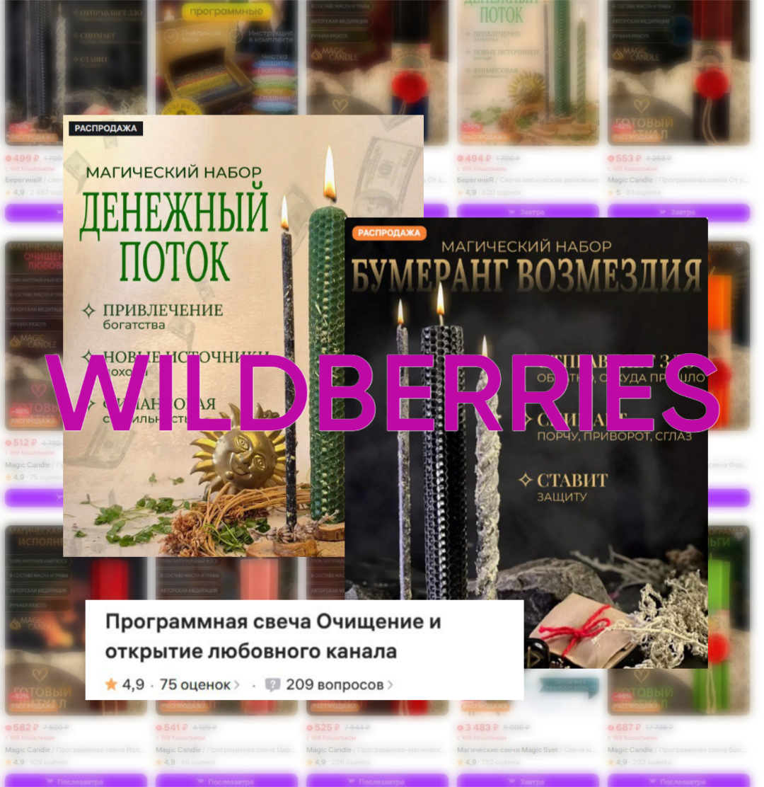 А есть что-то лучше, осязаемое, наглядное. Тут и вступают в ход готовые программные свечи с маркетплейса — для приворота, на здоровье, на финансы (обязательно зелёненькая), возврат негатива и т. д. Глаза разбегаются, хочется всё и сразу. А ещё наборы есть на сразу несколько сфер в жизни! Минус деньги с карты, а в голове мысли, что наколдуешь себе лучшее будущее. А после — множество радостных и не очень радостных отзывов.