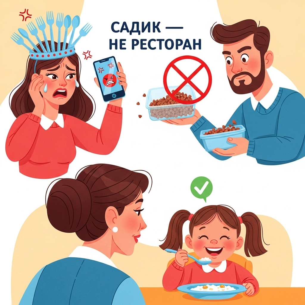 ⛔ Если ребенок просто «не любит манку» или «привык к маминым котлетам» — это его личные вкусовые предпочтения, и сад не обязан под них подстраиваться.