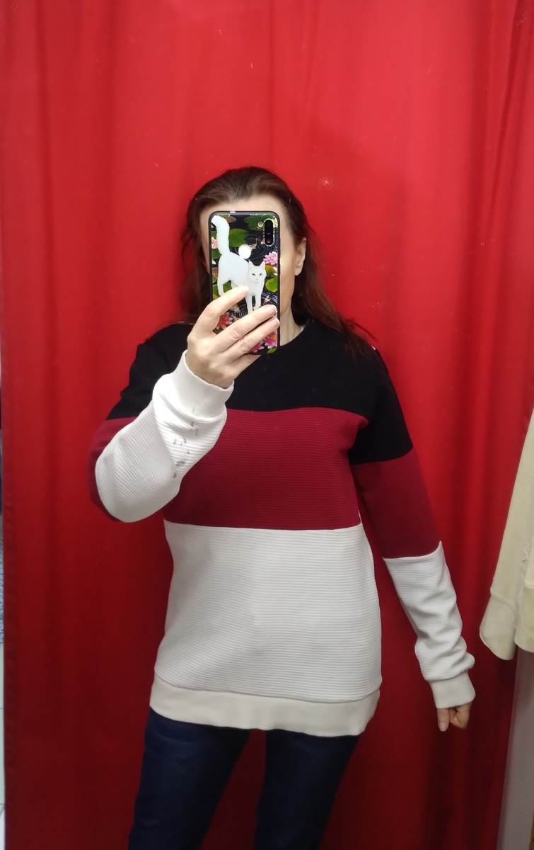 Здравствуйте, на днях прочитала новость, что в школах может появиться новый урок - курсы молодого бебиситтера. Начнут учить малышам менять подгузники и сажать на горшок. Если верить прессе, то большинство родителей, детей и учителей в восторге от открывшихся перспектив. Школьники будут проходить стажировки в детских садах, центрах помощи семьям и социальных приютах( это цитата ). А тот кто до этого додумался доверит своего ребенка или захочет профессионалов с дипломами? Можно сказать, что это в жизни пригодится. Но в жизни может пригодиться очень многое. Может обучать школьников уходу за престарелыми или за неизлечимо больными? Это тоже может пригодиться, от этого никто не застрахован ( особенно, если нет денег на профессионалов с дипломами ). Почему не дают просто учиться? Продолжу обзор из секонда, цена 990 за кг. Полосатый свитшот, похоже, что синтетика, но приятная мяконькая. Платье трапеция и рукава тоже расширяются к низу. Из моей любимой пестрой вискозы. Я бы его для дома