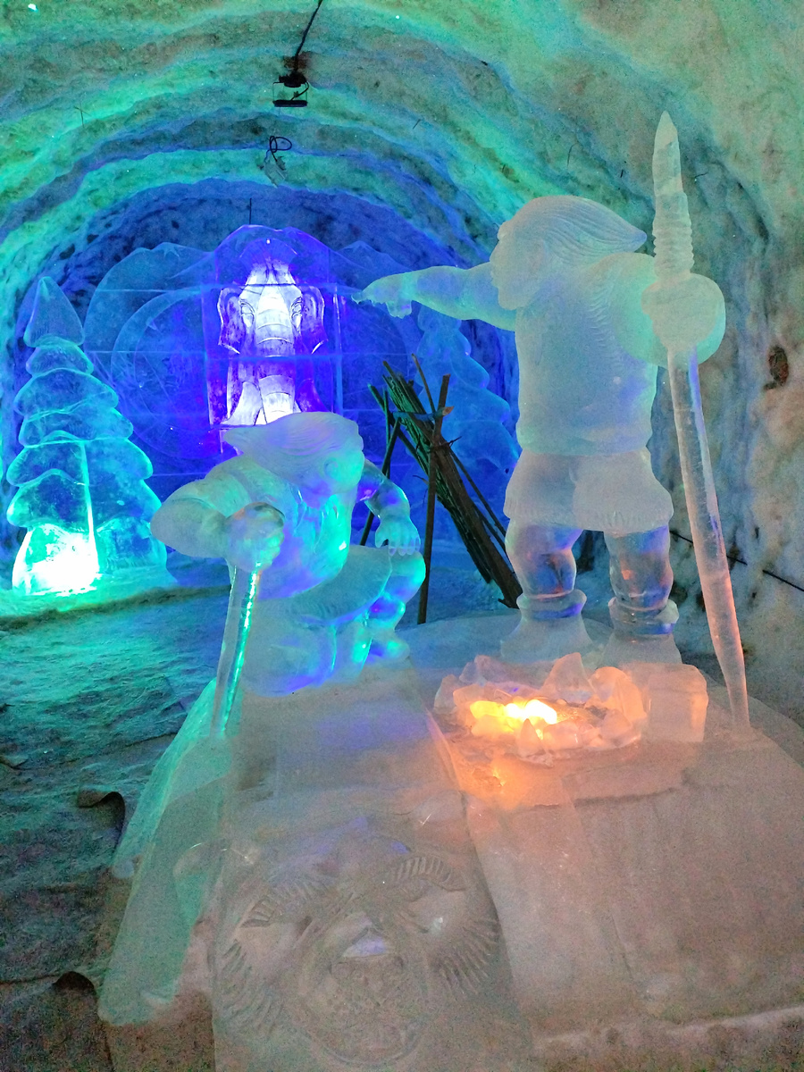 Почему зимой «Царство вечной мерзлоты» не советую? Правильно, потому что на улице и без того мороз, а красивыми ледяными скульптурами на площадях столицы Якутии можно вдоволь налюбоваться. Оригинальные фигуры изо льда в заиневевших гротах, собственно, и составляют экспозицию туркомплекса.