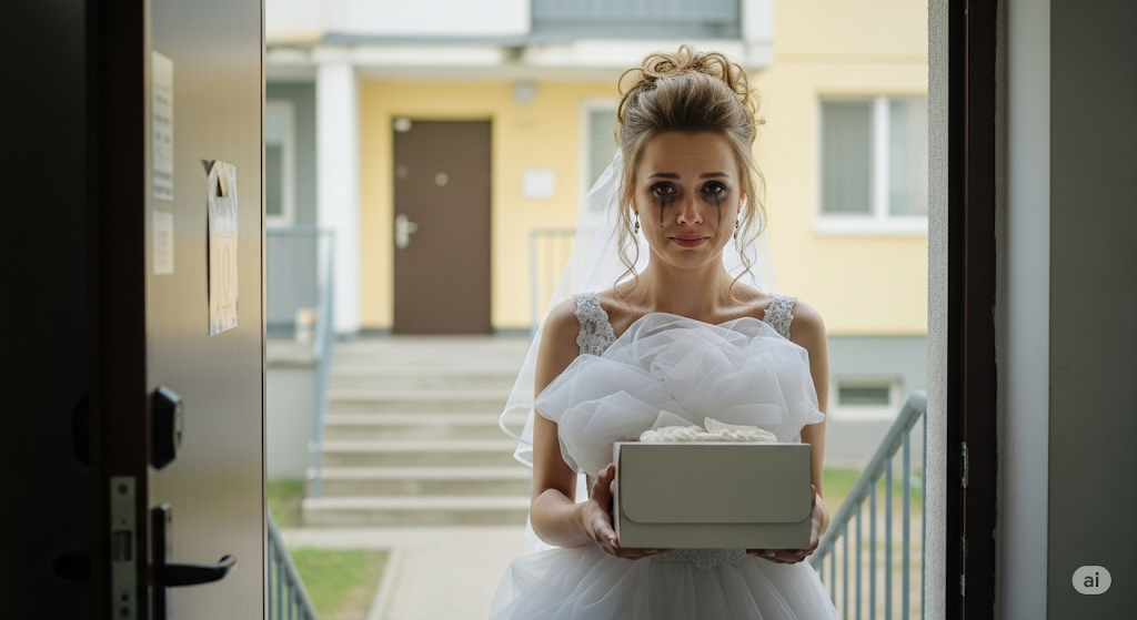 Через десять минут София стояла у обшарпанной двери квартиры на третьем этаже старой пятиэтажки. Сердце колотилось от волнения. Что она скажет? Как её воспримут? Женщина в свадебном платье с тортом посреди ночи — это выглядело как минимум странно.