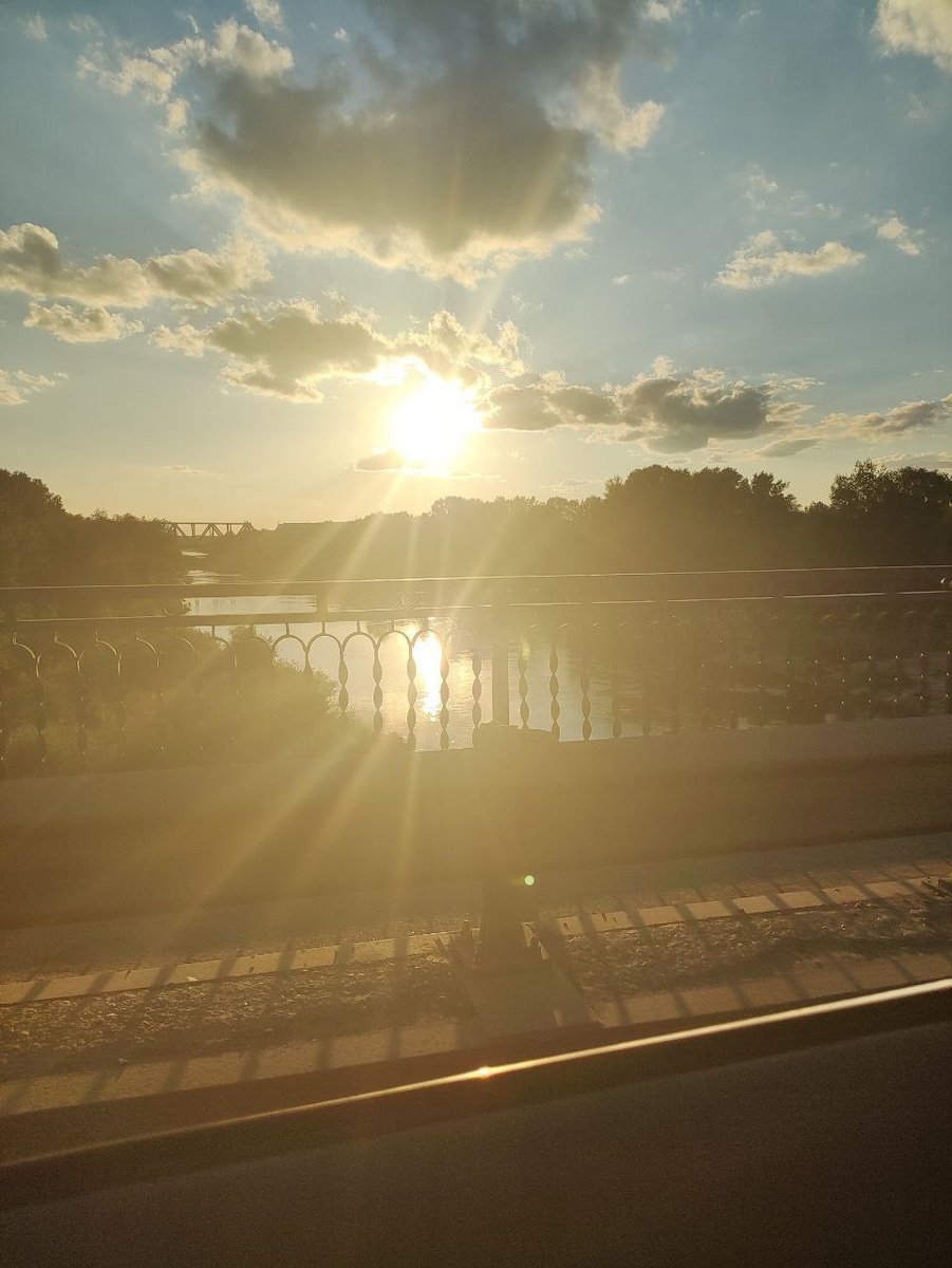 Вот такой красивый закат можно увидеть, пока стоишь в пробке на мосту через Урал