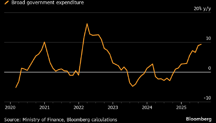 Бюджетное стимулирование в Китае выросло в первые семь месяцев года на 9,3% г/г до 21,5 трлн юаней ($3 трлн), пишет Bloomberg. Но это не вылилось в ускорение экономического роста: напротив, в июле было зафиксировано неожиданное и резкое замедление. Бюджетное стимулирование в Китае в широком определении (изменение в % г/г). Источник: Bloomberg (собственные расчеты) Бюджетное стимулирование в Китае в широком определении* выросло в первые семь месяцев года на 9,3% г/г до 21,5 трлн юаней ($3 трлн), пишет Bloomberg со ссылкой на собственные расчеты, основанные на опубликованной во вторник официальной статистике. Это — рекордное значение с августа 2022 года. *ProFinance.ru: включает в себя все расходы от инфраструктурных до зарплат госслужащих Увеличение госрасходов привело к росту бюджетного дефицита на 49% г/г до 5,6 трлн юаней. При этом расширение стимулирования не вылилось в ускорение экономического роста: напротив, в июле было зафиксировано неожиданное и резкое замедление. Официальный П