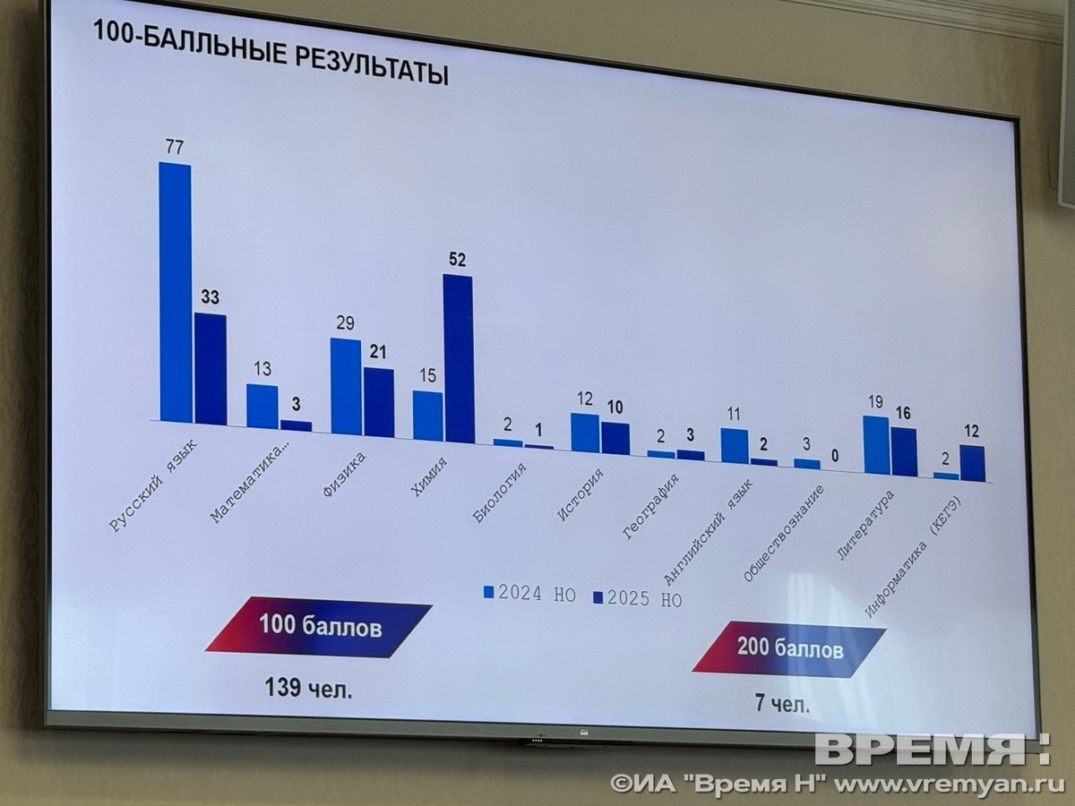 Итоги экзаменов были представлены на заседании комитета Законодательного собрания. Стали известны результаты сдачи ОГЭ и ЕГЭ нижегородскими школьниками. Итоги сегодня, 20 августа, озвучила исполняющий обязанности министра образования и науки Нижегородской области Любовь Широкова в ходе заседания комитета Законодательного собрания по социальным вопросам, сообщает корреспондент ИА «Время Н». Всего в этом году ЕГЭ сдавали 13 511 человек: 12 185 — выпускники текущего года, 969 — выпускники прошлых лет, 334 человека — обучающиеся среднего профессионального образования. «Обязательные учебные предметы для ребят — русский язык и математика базового или профильного уровня. Хочу обратить внимание, что количество сдавших информатику и физику в этом году возросло на 6% при общем росте количества участников на 2%», — рассказала Широкова. По ее словам, в Нижегородской области в текущем году наблюдалась тенденция сохранения среднего балла ЕГЭ по предметам естественно-научного профиля. Семь обучающихс