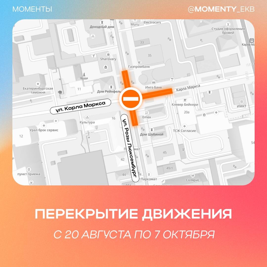 Очередное перекрытие ждет Екатеринбург. В центре уральской столицы с 20 августа по 7 октября ограничат движение по нечетной стороне Розы Люксембург. Перекрытие затронет и участок на Карла Маркса возле домов №37 и №39. Ограничения связаны со строительством сетей водопровода и канализации к зданию по адресу Розы Люксембург, 45. Объехать ремонтные работы возможно по улицам Розы Люксембург — Куйбышева — Белинского — Карла Маркса. Подписаться 🔸 Обсудить