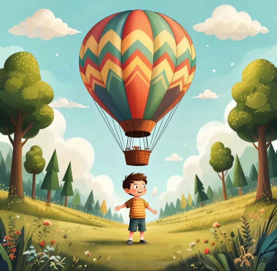 Жил-был мальчик по имени Миша. Он был любознательным и мечтательным ребёнком с большими голубыми глазами и светлыми волосами, похожими на солнечные лучи. Больше всего он любил смотреть на облака, представляя себе невероятные приключения, которые могли бы произойти за пределами своего маленького городка. Однажды утром, когда Миша проснулся раньше обычного, он увидел у окна странную вещь - огромный яркий воздушный шар, парящий прямо над крышей дома! Шар сверкал всеми цветами радуги, словно маня его отправиться в путешествие. — Привет, Миша! Хочешь увидеть мир? – услышал вдруг мальчик тихий голос из шара. Миша не поверил своим ушам и протёр глаза, но шар снова заговорил: — Я знаю твои мечты о далёких странах и удивительных приключениях. Садись скорее ко мне! Не раздумывая ни секунды, Миша запрыгнул внутрь корзины воздушного шара. Тот мягко поднялся вверх, оставив позади шум улицы и знакомую улицу. Внизу проплывали крыши домов, зелёные деревья и уютные дворики. Полетел шар вместе с