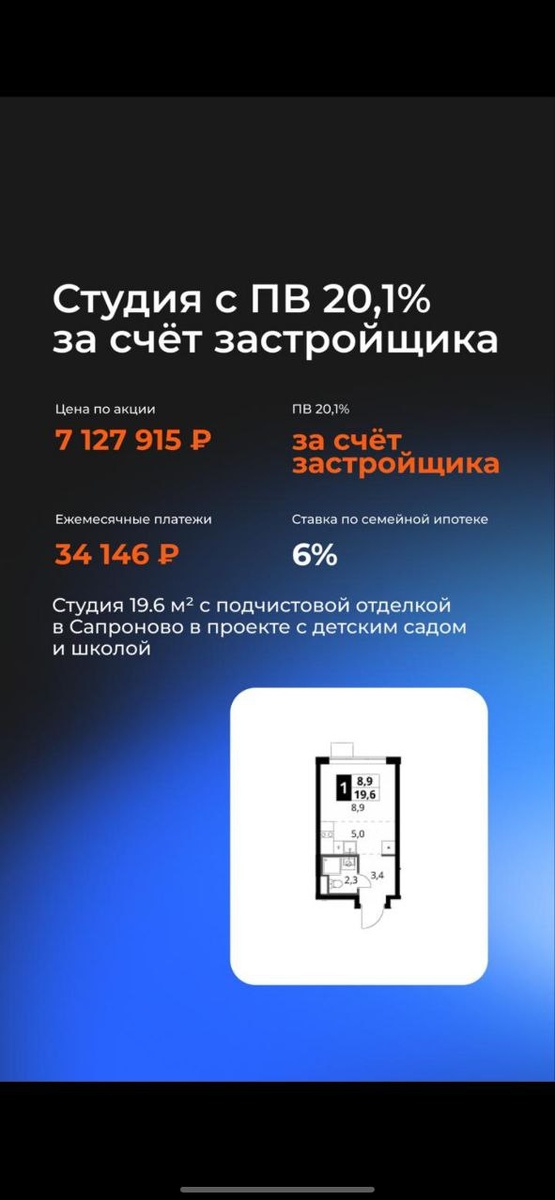 Ипотека без ПВ ⚡️ Актуальные расчёты по квартирам! 1. Студия в ЖК 1-й Донской за 7 127 915 руб. с ПВ 20,1%, который взносит застройщик 2. 1ккв. в ЖК 1-й Шереметьевский за 10 773 226 руб. с ПВ 20,1%, который взносит застройщик 3. 1ккв. в ЖК Малаховский за 7 199 084 руб. с ПВ 650 000 руб. (Мат. капитал) ⚡️ 4. Студия в ЖК EVO за 8 080 885 руб. без ПВ 5. 1ккв. в ЖК Riga Hills за 12 491 710 руб. с ПВ 0% ⚡️ 6. 1ккв. в ЖК Новотомилино за 12 580 237 руб. с ПВ от 100 000 руб. ⚡️ 7. Студия в ЖК Детали за 11 290 656 руб. по программе «Легкий старт» Расчёты на канале! Подробная информация по запросу!