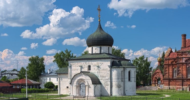 «Георгиевский собор в Юрьеве-Польском был построен в 1234 году, а первый белокаменный храм в Москве появился в 1326-м и был сделан по образцу Георгиевского храма в Юрьеве-Польском. Но московский храм не сохранился, — говорит заместитель генерального директора по научной работе Владимиро-Суздальского музея-заповедника Олег Рыжков. — Наш храм отличается от первого белокаменного в Переславле-Залесском, потому что построивший его юрьевский князь Святослав Всеволодович, внук Юрия Долгорукого, был архитектором-новатором».