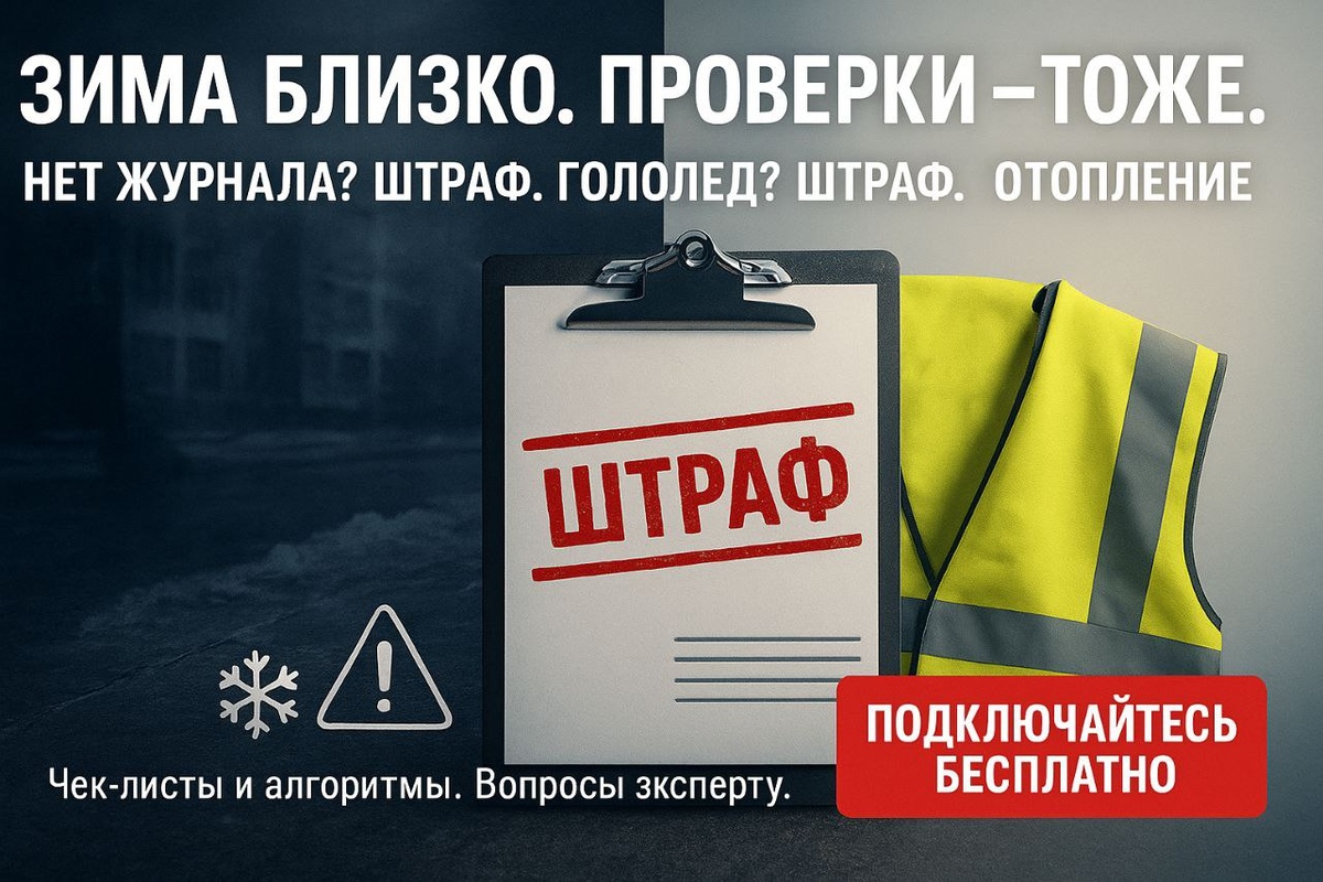 🚨 Зима близко. Проверки — тоже. Инспектору всё равно: гололёд, отопление или отчёты. ⚠️ Нет журнала? Штраф. ⚠️ Не организована уборка снега? Штраф. ⚠️ Не готовы медосмотры и СИЗ? Опять штраф. А теперь представьте: 🟢 У вас чек-лист подготовки к зиме 🟢 Документы в порядке 🟢 Инспектор уходит без претензий ❄️ Вебинар: «ОТ: подготовка к осенне-зимнему периоду — проверки, отопление, гололёд» 🔊🔊🔊🔊 ЗАВТРА 21.08. В 16.00 Vk.com/teus_company ПОДКЛЮЧАЙТЕСЬ 📌 Что получите: — Чек-листы для подготовки — Пошаговый алгоритм по отоплению и уборке — Ответы на ваши вопросы — Всё бесплатно 🔔 Подключайтесь бесплатно — и встречайте зиму без штрафов и нервов! Vk.com/teus_company #ОхранаТруда #Вебинар