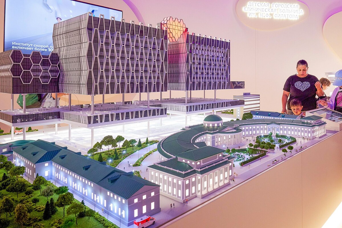 Но на фестивале "Территория будущего. Москва 2030" попытались заглянуть еще дальше, показав макеты будущих комплексов НИИ скорой помощи имени Н.В. Склифосовского, ГКБ имени В.П. Демихова, МКНИЦ "Больница 52" и ДГКБ имени Н.Ф. Филатова.