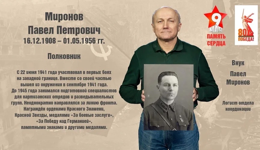 На фронтах Великой Отечественной войны сражался за победу над немецко-фашистскими захватчиками Павел Петрович Миронов – родной дедушка логиста отдела координации МТРК «Мир» Павла Евгеньевича Миронова.