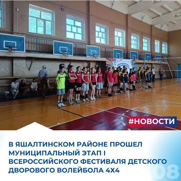 20 августа на базе местной детско-юношеской спортивной школы прошел муниципальный этап I Всероссийского фестиваля детского дворового волейбола 4х4 «Дворовый волейбол – территория спорта и дружбы» Мероприятие, инициированное и поддерживаемое партией «Единая Россия» в рамках реализации народной программы и партпроекта «Детский спорт», объединило юных спортсменов 2011-2012 годов рождения. Торжественную церемонию открытия провели почётные гости заместитель Главы Яшалтинского районного муниципального образования Республики Калмыкия, начальник финансового отдела администрации Роман Колыбин, ведущий специалист по делам молодёжи и спорта Мария Хаидова и директор ДЮСШ Елена Цветкова. В соревнованиях приняло участие шесть команд из общеобразовательных школ Яшалтинской, Эсто-Алтайской, Весёловской и Бага-Тугтунской. Победителем Фестиваля стала команда Бага-Тугтунской СОШ (представитель команды Доржинов Н. И.), вторым призёром стала команда Яшалтинской СОШ (представитель команды Томберг В. И.)