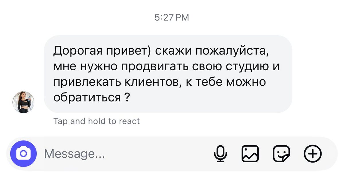 Начала вести старую страницу Инстаграм с 250 подписчиками вчера. Выгрузила 2 рилз и 1 карусель. Сегодня в Директ:
