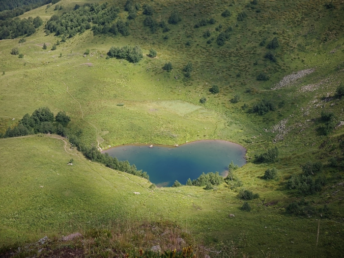 Путь к озеру Любви не быстрый, подъем из поселка Архыз около 1000м вверх и около 8 км протяженностью, тропа идет большей частью через лес. По пути встречается несколько ручьев, самый большой непосредственно перед озером. Прогулка до озера это отличный однодневный маршрут, а вот если еще попытаться добраться до вершины горы Красная (2778м), то сделать это за один день очень тяжело. Вершина осталась непокоренной, я не дошел 200м высоты, а подруга около 100м высоты. На часах было уже 15-30 и решили спускаться вниз, так как сбросить 1200-1300м высоты задача тоже не простая. Отдыхающие загорают и купаются в озере, вода там ледяная, если что, но это не мешает. Кто-то поднимается посмотреть снежник чуть выше, место хорошее с отличными панорамными видами. Подписаться на Пикабу Познавательный. и Пикабу: Истории из жизни.