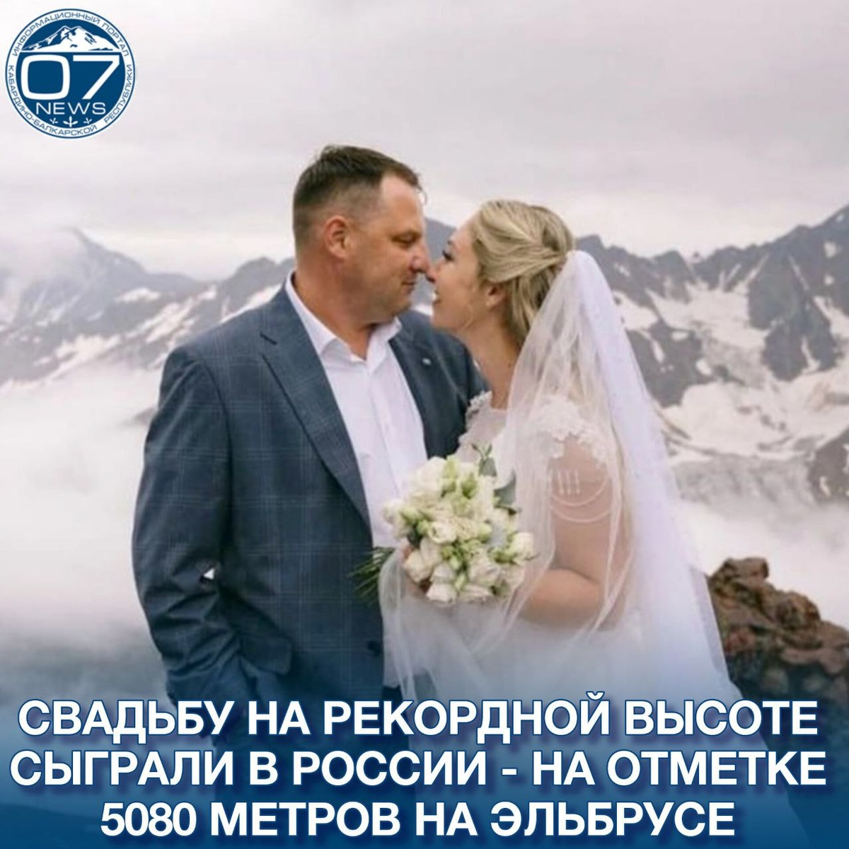 Свадьбу на рекордной высоте сыграли в России - молодая пара из города Коврова Владимирской области поднялась на гору Эльбрус на высоту 5080 метров, а для церемонии бракосочетания с ними отправилась наверх и сотрудница ЗАГС Кабардино-Балкарии. С погодой молодым не очень повезло - ливень, ветер, гроза и снегопад встретили влюбленных по пути к седловине Эльбруса. Несмотря на это, все испытания они прошли с улыбкой. Молодоженам пришлось сначала подняться по канатной дороге, а затем на ратраках выше по склону. До самой вершины не добрались, потребовалась бы дополнительная подготовка. Предложение руки и сердца молодой человек сделал избраннице тоже в Приэльбрусье.