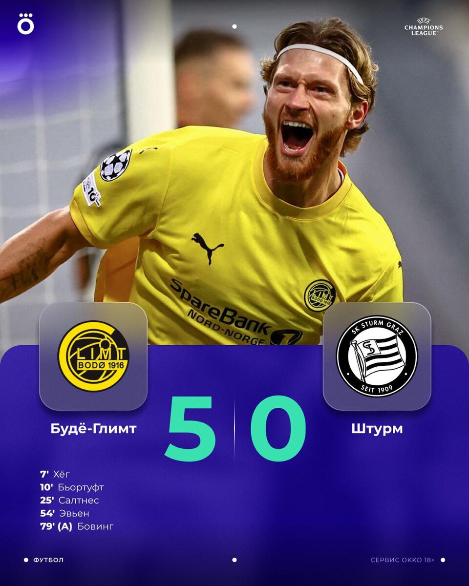 «Будё-Глимт» мчится в общий этап ЛЧ! «Штурму» в ответке поможет только чудо 😱
