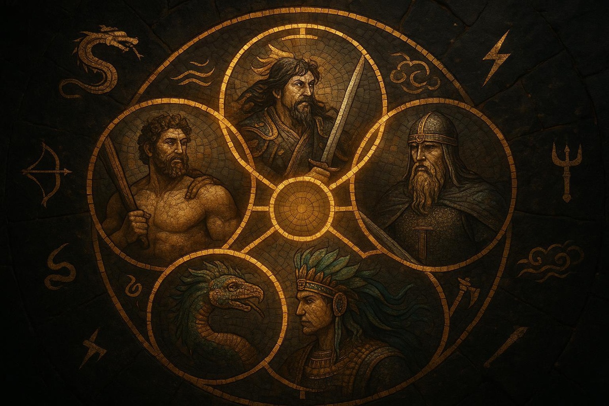 «Когда ты видишь одну и ту же историю у греков, японцев, славян, инков — это не случайность. Это память. Или предупреждение». Представь: — греческий герой Геракл убивает чудовищ, очищает земли, совершает 12 подвигов. — критский герой Тесей побеждает Минотавра в лабиринте, освобождает народ. — японский воин Сусанно-о убивает восьмиголового дракона Ямата-но-Ороти и спасает девушку. — славянский бог Перун громит змея, освобождает солнце. — индийский Кришна побеждает демона Кансы. — месоамериканский Кецалькоатль сражается с силами тьмы. Разные страны. Разные языки. Разные эпохи. Один и тот же сюжет. 1. ✅ Происхождение: сын бога и смертной женщины. 2. ✅ Сила: превосходит обычных людей. 3. ✅ Миссия: очистить землю от чудовищ, тьмы, хаоса. 4. ✅ Подвиг: победа над многоголовым змеем/драконом/чудовищем. 5. ✅ Жертва: страдает, теряет близких, часто гибнет или исчезает. 6. ✅ Наследие: становится культурным героем, символом порядка. Это не миф. Это архети