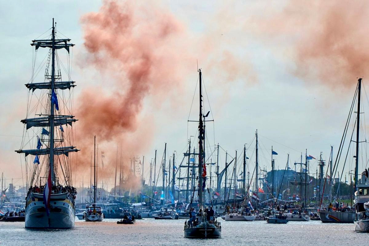 в пять лет в столицу Нидерландов приходит SAIL Amsterdam: сотни парусников и исторических кораблей входят парадом в гавань IJ и
