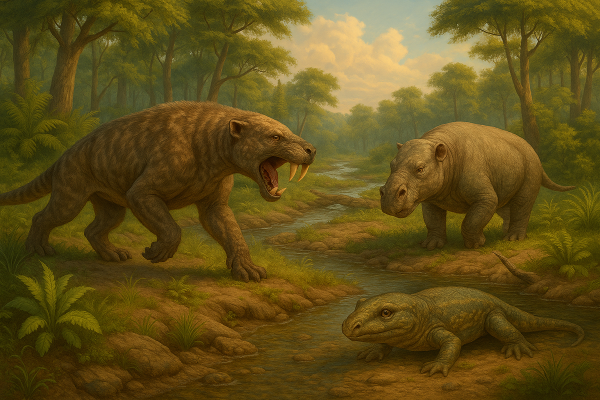 Примерно 252 миллиона лет назад, в конце пермского периода, Земля пережила самое масштабное массовое вымирание: исчезло 90 % видов морских организмов и 70 % наземных. Но что было до этой катастрофы? Новые раскопки в Танзании и Замбии раскрывают картину богатых экосистем, где обитали саблезубые хищники и причудливые земноводные. Учёные нашли десятки новых видов, в том числе крупных темноспондилов – древних амфибий, и гетеродонтов – травоядных зверообразных рептилий. Эти находки помогают понять, как выглядело африканское плато в эпоху, когда континенты ещё только соединялись. Одни из самых впечатляющих животных перми – горгонопсии. Эти плотоядные рептилии напоминали кошек с саблевидными клыками. Сильные задние ноги позволяли им быстро бегать и рвать добычу. Наряду с ними жили дикродонты – крупные травоядные, копавшие норы. Их зубы напоминали лопаты, а на морде были выросты. Они, возможно, жили группами, а в случае опасности прятались в глубоких норах. Темноспондилы – огромные амфибии, п