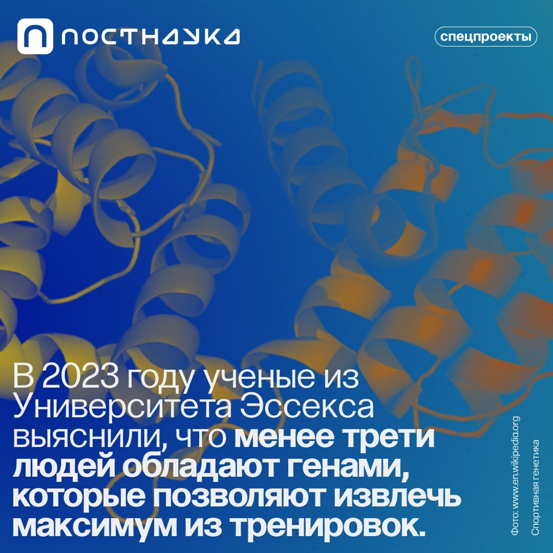 Генетика спорта — молодая наука, исследования в которой пока фрагментарны, но уже сейчас она открывает перспективы для нового подхода к тренировкам. Возможно, в будущем генетики станут частью тренерских штабов, помогая спортсменам использовать свои природные особенности для достижения максимальных результатов. Как работает генетика в спорте? Разбираем в спецпроекте коммуникационного агентства ПостНаука.Specials: https://postnauka.org/longreads/157501. #PNspecials