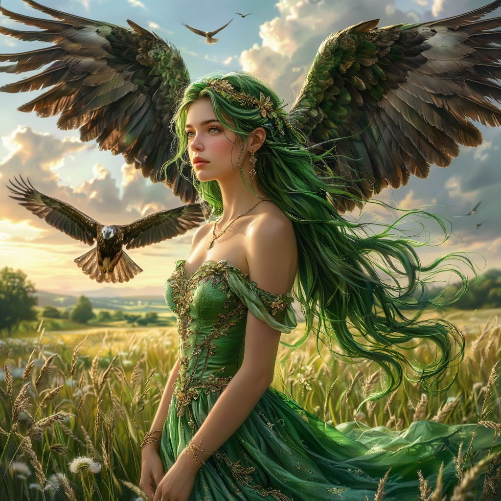 В одном волшебном лесу, где деревья шептали секреты ветру, а цветы пели песни солнцу, жила прекрасная принцесса по имени Лира. Она была не обычной принцессой — её волосы переливались всеми оттенками зелёного, а платье было сплетено из луговых трав. Лира любила гулять по лесу, разговаривать с животными и помогать тем, кто попал в беду. Каждое утро она просыпалась с первыми лучами солнца и отправлялась на свои лесные приключения. Однажды, пролетая над лесом, степной орёл по имени Ардан заметил необычную девушку. Его поразила не только её красота, но и доброе сердце. Ардан был особенным орлом — он умел говорить человеческим голосом и обладал мудростью древних птиц. Но была у него одна тайна: злая колдунья Моргана наложила на него заклятие, из-за которого он не мог спуститься на землю и быть рядом с теми, кого любил. Каждый день Ардан наблюдал за Лирой с высоты, восхищаясь её добротой и красотой. Принцесса тоже замечала величественную птицу, но не знала о его чувствах. Однажды, когда Лир