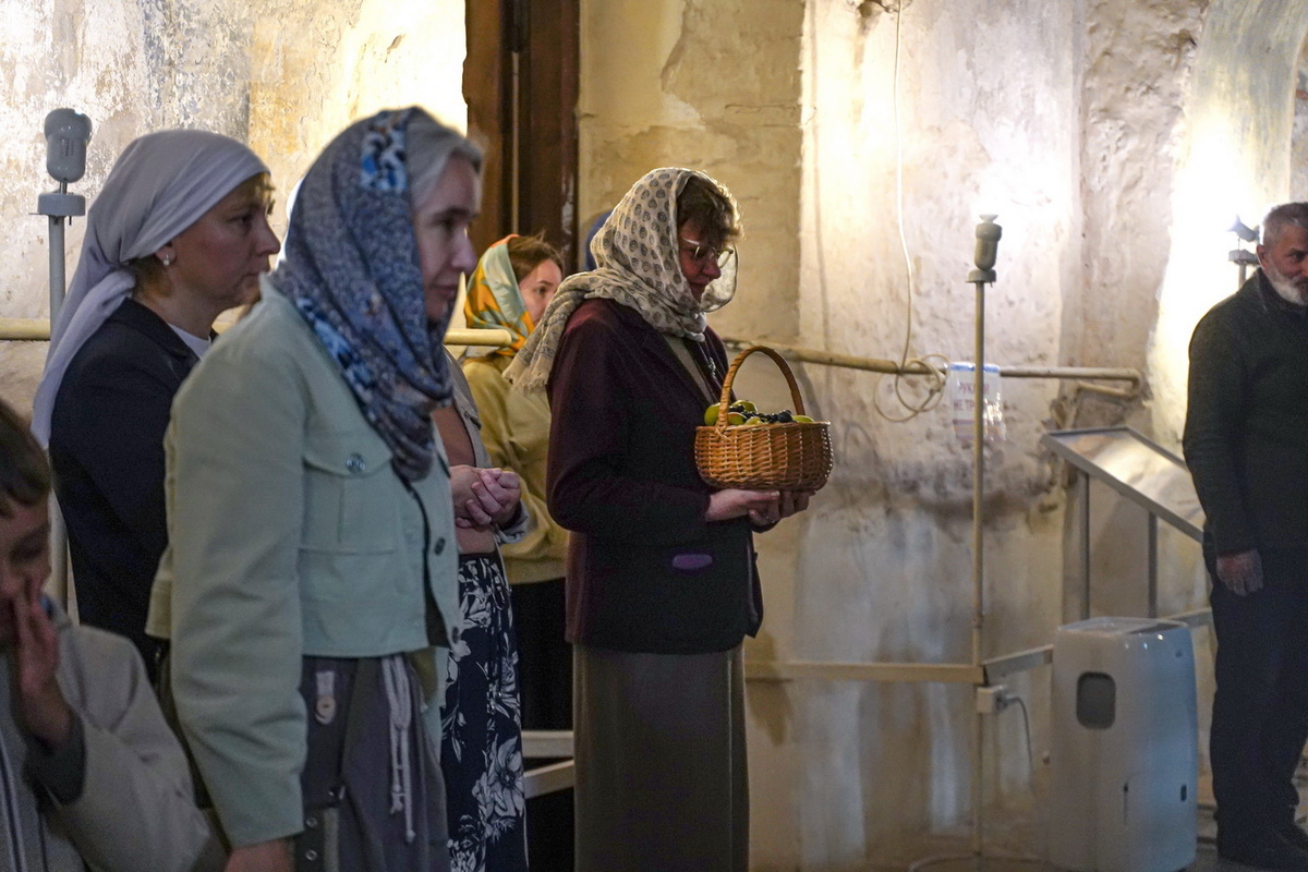 По окончании Литургии в притворе храма, а также на прихрамовой территории было совершено освящение плодов нового урожая.