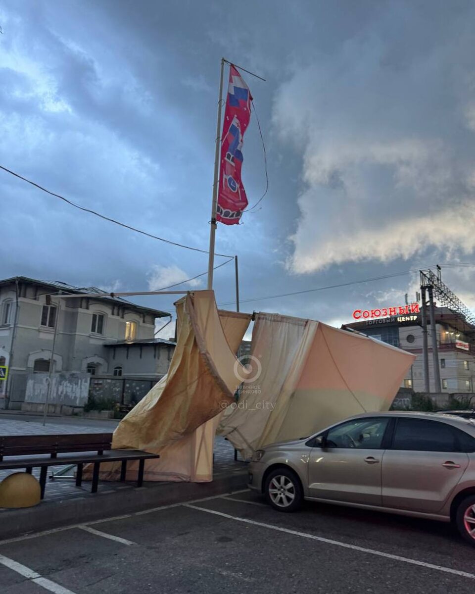 За несколько секунд до ливня на Привокзальной площади соседняя цветочная палатка прилетела в автомобильную парковку 🤷 Источник
