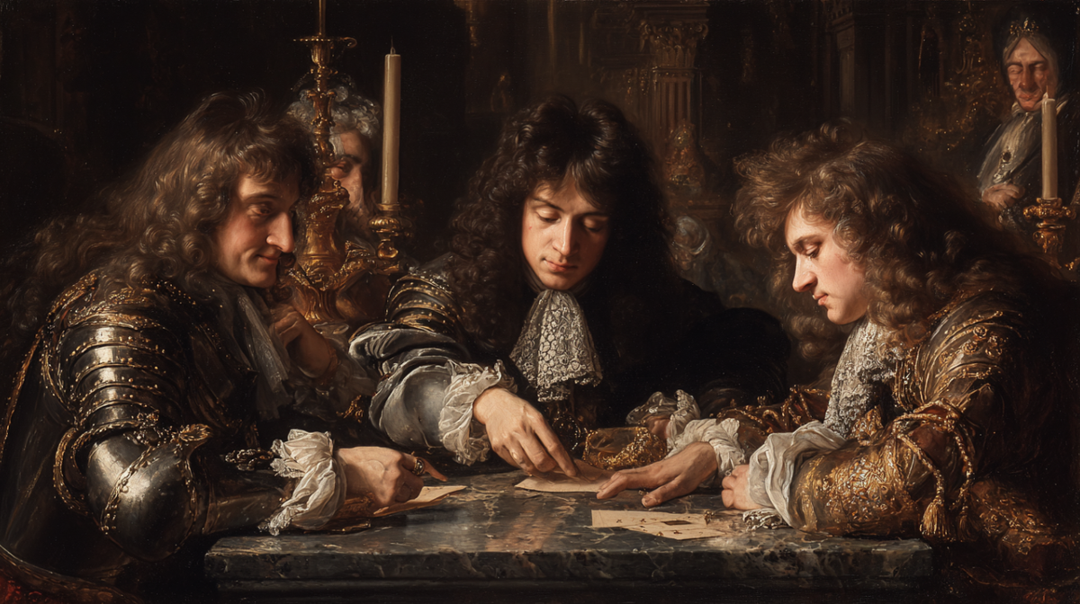 Зимний вечер 1660-х в парижском салоне. Свечи трепетали от волнения не меньше самих заговорщиков. Элегантные офицеры склонились над столом, словно полководцы над картой решающего сражения.