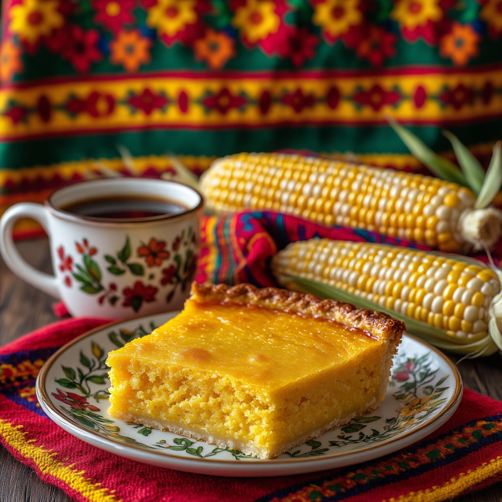 Π±Π»ΡΠ΄ ΡΠ²Π»ΡΠ΅ΡΡΡ ΠΊΡΠΊΡΡΡΠ·Π½ΡΠΉ ΠΏΠΈΡΠΎΠ³ (Pastel de Elote). ΠΡΠΎΡ ΠΏΠΈΡΠΎΠ³ β Π½Π΅ΠΆΠ½ΡΠΉ, ΡΠ»Π°Π΄ΠΊΠΎΠ²Π°ΡΠΎ-ΡΠ»ΠΈΠ²ΠΎΡΠ½ΡΠΉ, Ρ Π»ΡΠ³ΠΊΠΈΠΌ Π°ΡΠΎΠΌΠ°ΡΠΎΠΌ Π²Π°Π½ΠΈΠ»ΠΈ ΠΈ Π½Π°ΡΡΡΠ΅Π½Π½ΡΠΌ Π²ΠΊΡΡΠΎΠΌ ΡΠ²Π΅ΠΆΠΈΡ