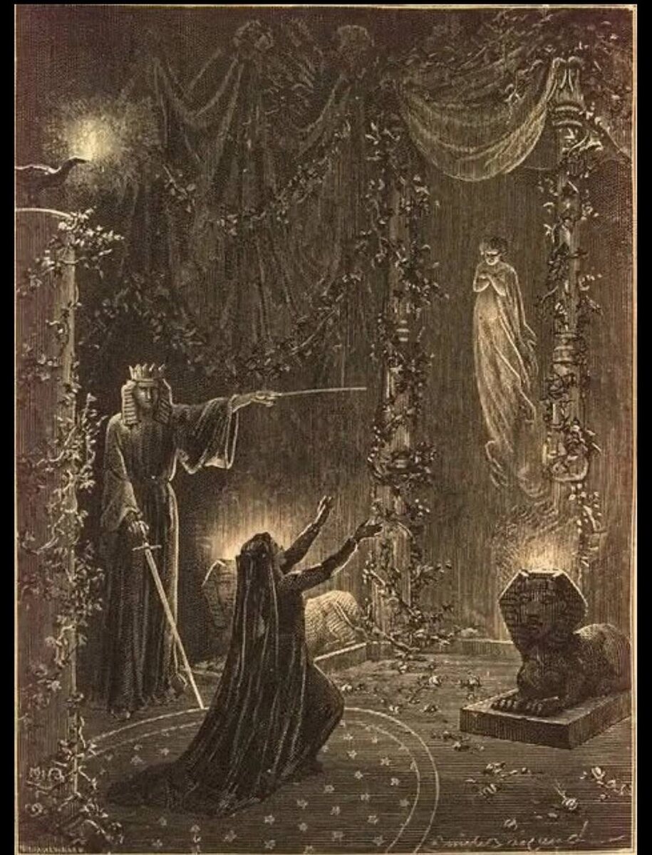 «Дух не приходит к магу только из-за обряда. Подлинная причина его явления — способность мага воздвигнуть особое магическое поле, пространство, насыщенное его волей. Внутри этого поля дух ощущает необходимость проявиться и вступить в общение. Не имя и не печать влекут его к присутствию, но знание магом его области и внутренняя сонастроенность с самим существом. Символы лишь служат ключами, тогда как дверь открывает сознание мага». Франц Бардон, «Практика магической эвокации» Картина Поля Кристиана «Évocation des Morts Aimés»