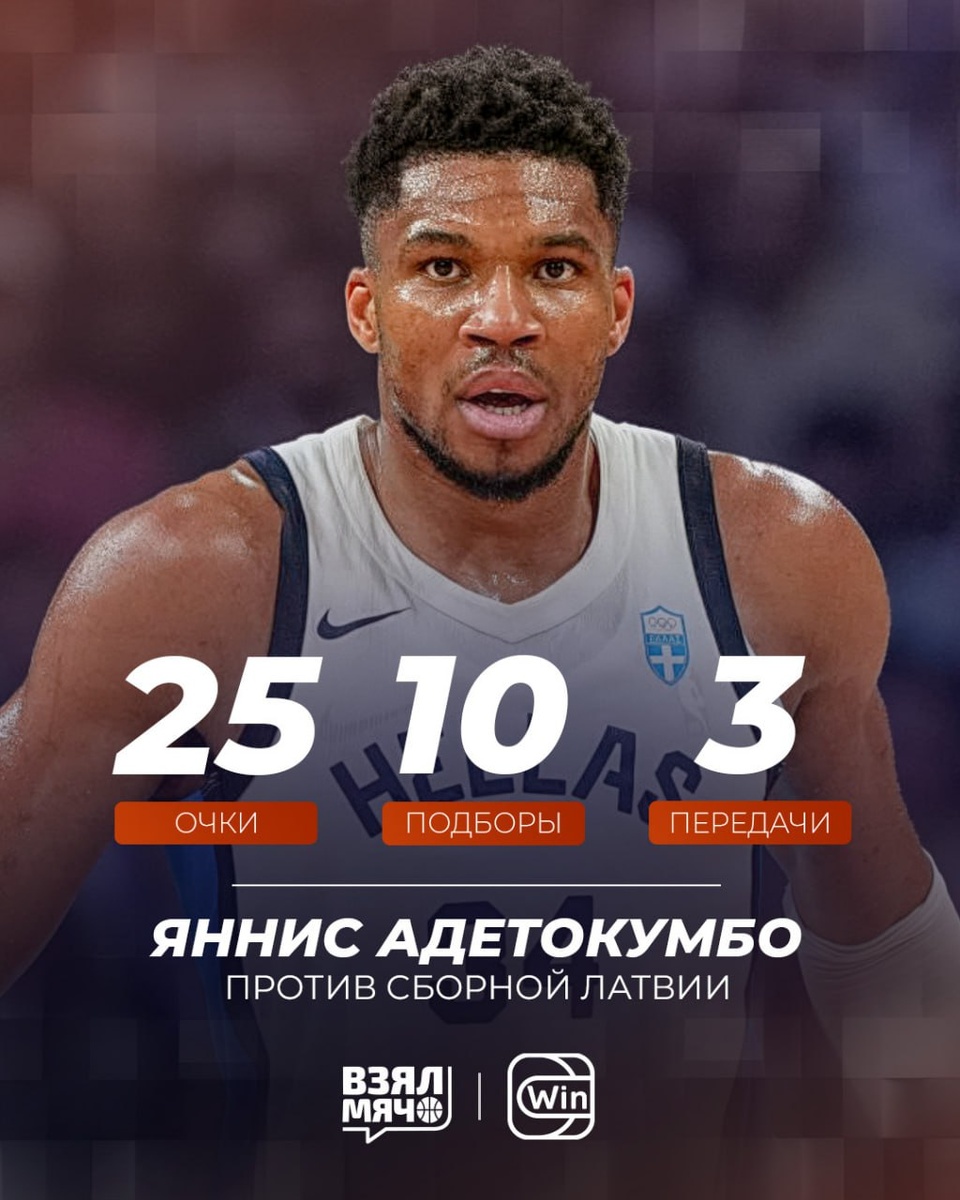 🔥 Яннис Адетокумбо за 15 минут собрал дабл-дабл против Латвии