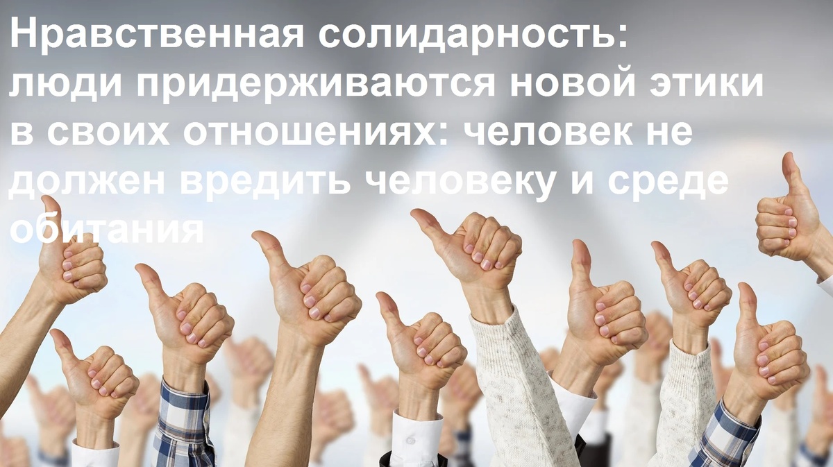 «Нравственная солидарность» направлена на предотвращение безнравственного сговора социальных паразитов и их круговую поруку против нищающего и бесправного населения.