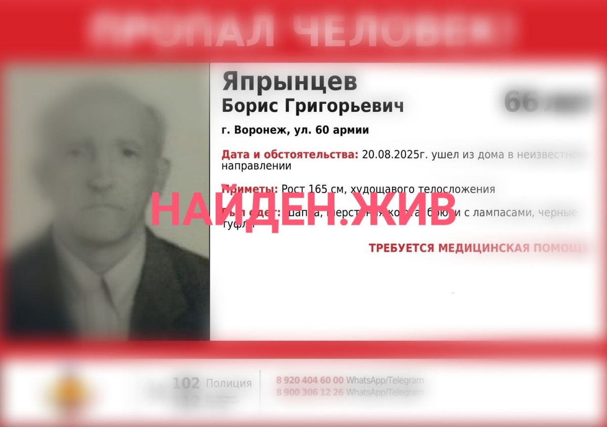#пкпсцрегион36 #Япрынцев ВНИМАНИЕ! ПРОПАЛ ЧЕЛОВЕК 66 лет! Япрынцев Борис Григорьевич г. Воронеж, ул. 60 армии 🆘 ТРЕБУЕТСЯ МЕДИЦИНСКАЯ ПОМОЩЬ 🆘 Просим поделиться информацией, ваш репост поможет в поиске. Всем кому известна любая информация обращаться по телефонам 112 или 8 920 404 60 00