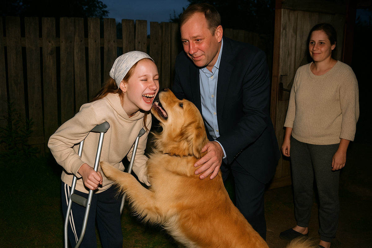 Из иномарки вышел мужчина лет сорока — высокий, в хорошем костюме. Вел за руку девочку лет двенадцати. У ребенка были проблемы с ногами — она передвигалась с трудом, опираясь на специальные костыли.