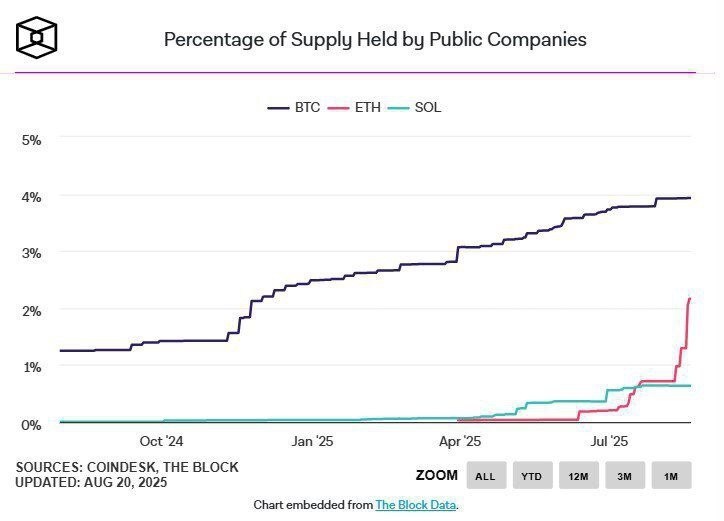 📊 С 1 июня Ethereum вырос примерно на 70% по сравнению с 9% у BTC, в результате чего соотношение ETH/BTC превысило 0.037 — максимум 2025