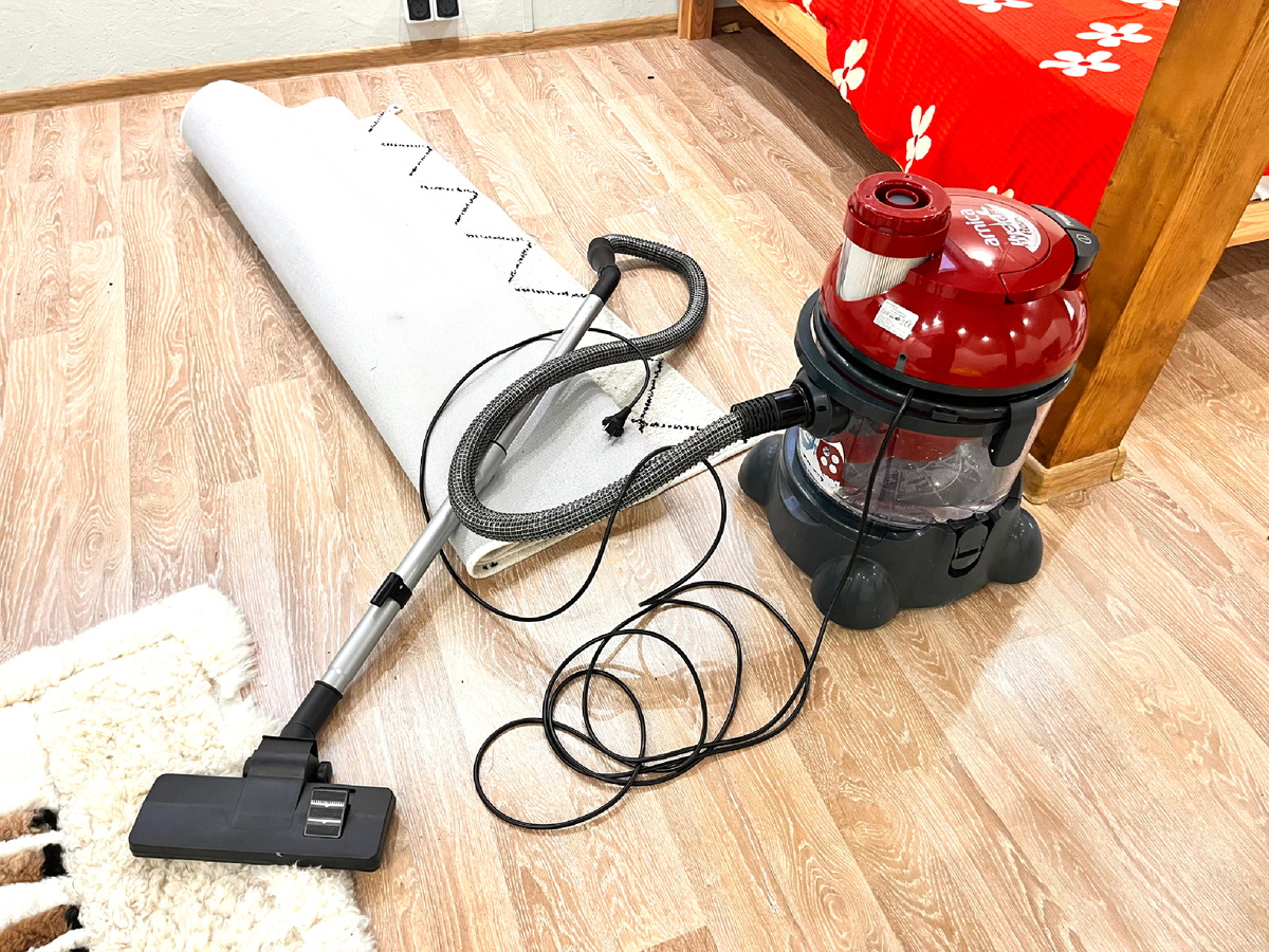 Следующее, что мне захотелось убрать - это был белый ковер. Покупали его еще в Икеа, когда он работал. За почти 4 года он изрядно испачкался, уже думала вести его в химчистку или вообще выкидывать. Но мы же так просто не сдаемся, попробовала отмыть его сама, теперь же у меня есть специальная для этого техника.