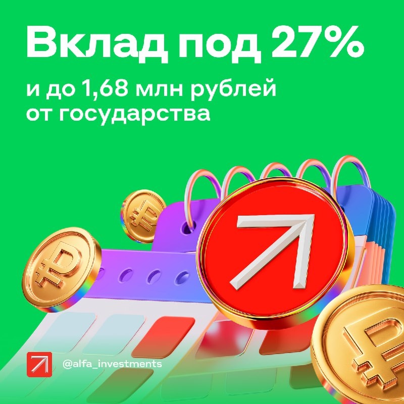 Запускаем Альфа-Вклад со ставкой 27% для всех, кто откроет программу долгосрочных ежений. Это новый инструмент … Запускаем Альфа-Вклад со ставкой 27% для всех, кто откроет программу долгосрочных ежений. Это новый инструмент накоплений с поддержкой государства В чём преимущества предложения Бонусы от государства по ПДС: до 1,68 млн рублей. Вот из чего они складываются: до 360 тысяч рублей за 10 лет субсидия от государства на счёт ПДС до 1,32 млн рублей в виде налогового вычета за 15 лет. Деньги на ПДС выгодно инвестируются: доходность программы в Альфа-Банке за прошлый год 21,56% годовых. Деньги и на вкладе, и на счёте ПДС застрахованы государством на сумму до 1,4 млн рублей и 2,8 млн рублей соответственно. Как получить такие условия 1 До 24 августа откройте счёт по ПДС и внесите на него от 30 тысяч рублей. 2 Вместе с ПДС откройте Альфа-Вклад и пополните его на сумму не меньше, чем внесли на ПДС. По вкладу вы получите повышенную ставку 27% на два месяца. 3 Начинайте копить на