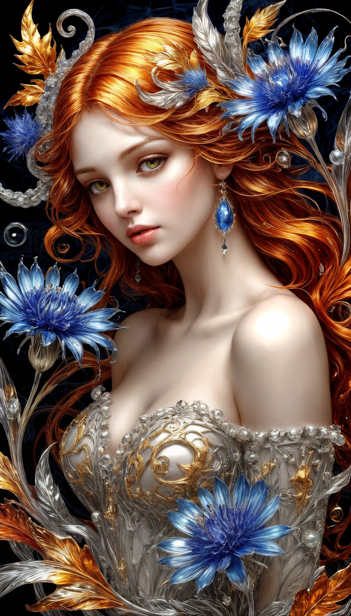 Привет, друзья! Дева среди странных узоров из горячего венецианского цветного стекла, васильков, 3 D, перламутровый фон цвета серебра с золотом, нежность и красота, образы сердечек и красивых листьев P.S. Приглашение на Мастер-Классы по изучению Топовых Нейросетей, где Вас ждут Бонусы и Подарки: <<<Участвовать Бесплатно>>>